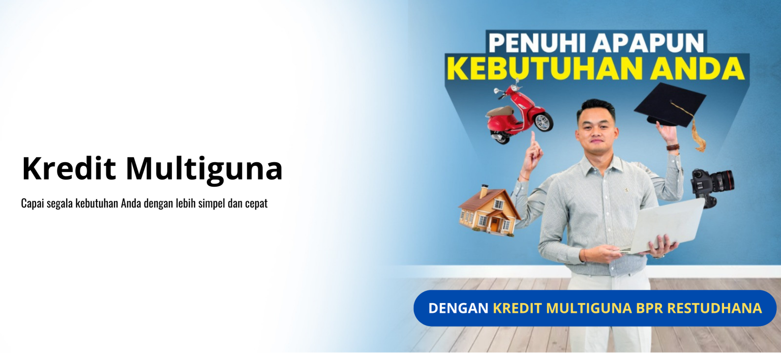 Kredit Multiguna dari BPR merupakan pilihan ideal bagi Anda yang membutuhkan dana fleksibel untuk beragam keperluan. Dengan jaminan yang dapat disesuaikan serta syarat pengajuan yang ringan, fasilitas ini bisa digunakan untuk kebutuhan pribadi, renovasi rumah, maupun tambahan modal usaha. Kami menyediakan tenor hingga 5 tahun dengan suku bunga yang bersaing, sehingga pembayaran angsuran menjadi lebih nyaman. Proses pengajuan berlangsung cepat dan praktis, ditambah layanan yang aman serta terpercaya, membuat Kredit Multiguna menjadi solusi terbaik bagi kebutuhan finansial Anda. Ajukan sekarang dan wujudkan rencana Anda bersama BPR!